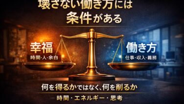 どんな仕事を選べばいいのか。その問いに正解はない。本記事では「時間・エネルギー・思考」の3つの視点から、幸福を壊さない働き方の条件と判断軸を整理する。