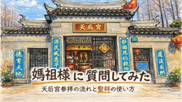 媽祖様参りの体験と聖杯の使い方転職や今後の生活について、いくつか決断しなければならないことがあった。考えても答えが出ない。いや、出ているけど、最後の一歩が踏み出せずにいた。そんなとき、妻に提案した。「媽祖様に聞きに行こう」信仰心が強いわけで...